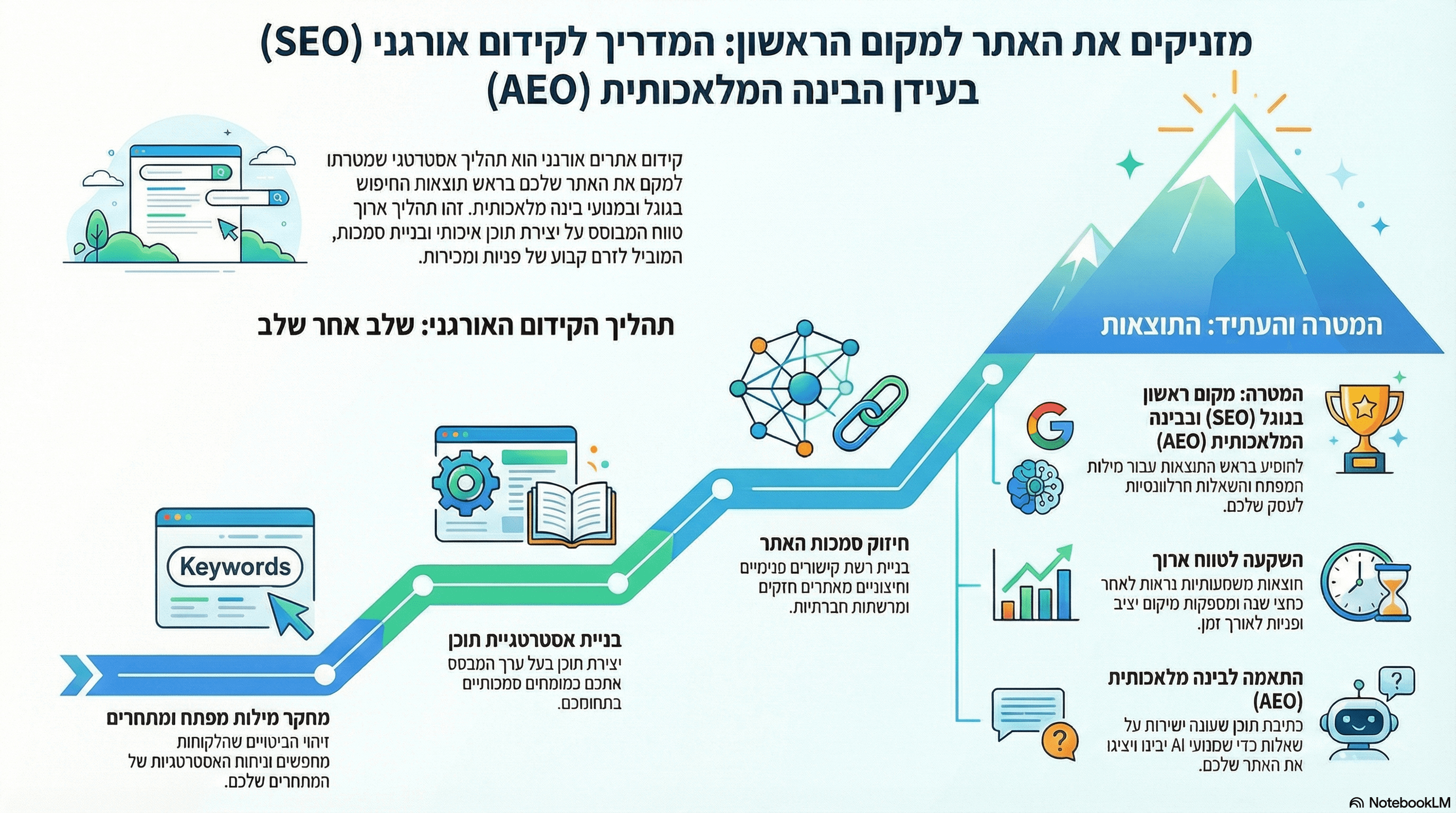 ייעוץ לקידום אורגני מקצועי יפנה לכם תקציבים, יביא לקוחות בלי לשלם על כל קליק ויבנה מותג שנשאר.
